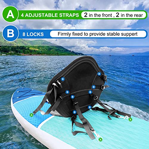 [Eenvoudige installatie en demontage] Uitgerust met oxford riemen en 4 metalen veerhaken, zijn de uitstekende haken nog duurzamer. om de stoel op zijn plaats te zetten. Gebruik gewoon de haken om de kajakstoel op je paddle board te monteren. De zitting kan eenvoudig worden teruggeklapt wanneer deze niet in gebruik is.