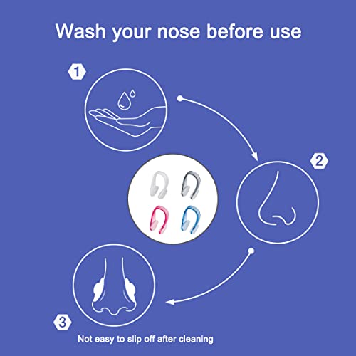 Inhoud van de verpakking: je ontvangt 4 stuks zwemneusclips in 4 verschillende kleuren, elke set zwemneusclips wordt geleverd met een kleine doorzichtige plastic doos voor eenvoudige opslag, vergrendelt veilig en voorkomt verlies.