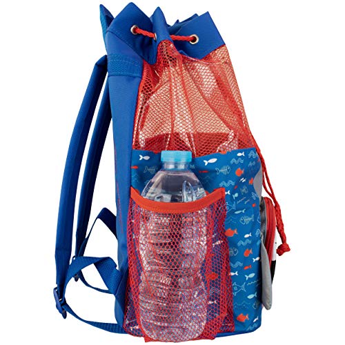 Nautisch geïnspireerde zwem rugzak met een grote witte haai met 3D vinnen en een handige trekkoord sluiting.